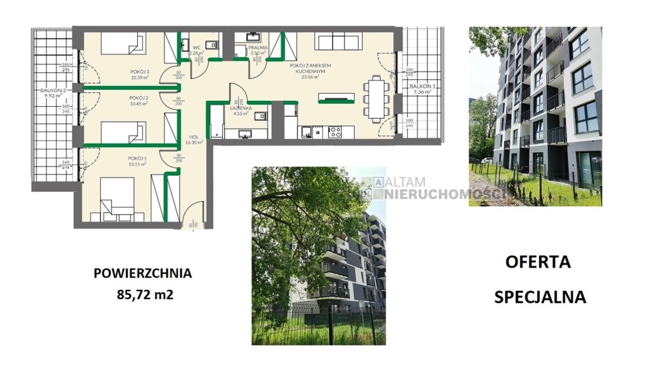 - 2 balkony o pow. 9,92 m2 oraz 7,36 m2