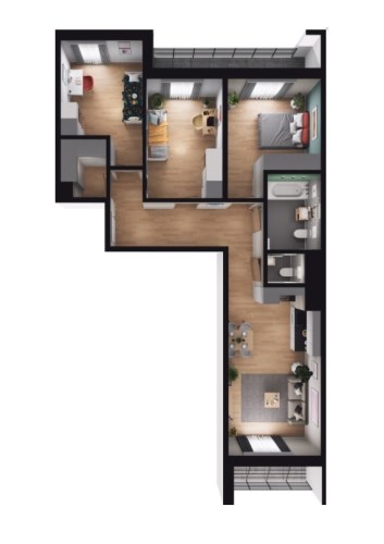 • dwa balkony typu loggia o powierzchni 4,65m² i 7,26m²