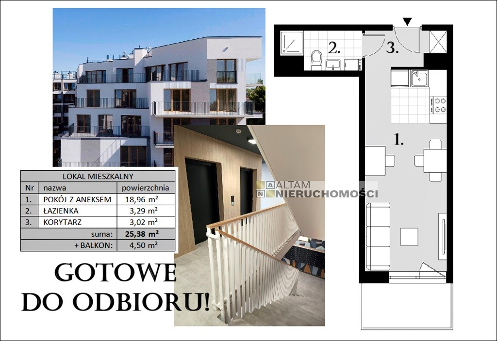 Przedmiotem sprzedaży jest 1-pokojowe mieszkanie z aneksem kuchennym o powierzchni 25,38 m² zlokalizowane na wysokim parterze z szerokim balkonem (dostępne również wyższe kondygnacje!).