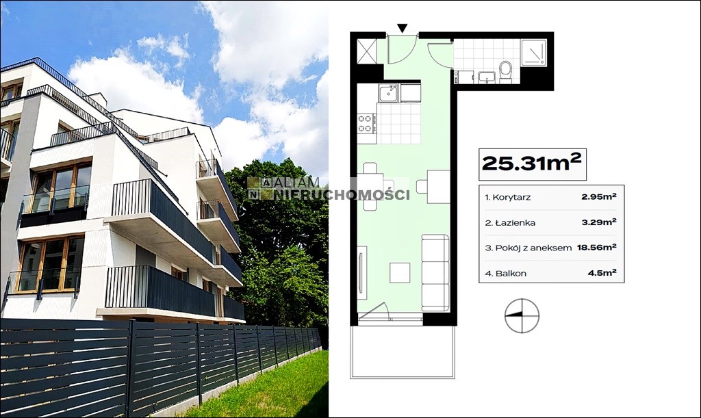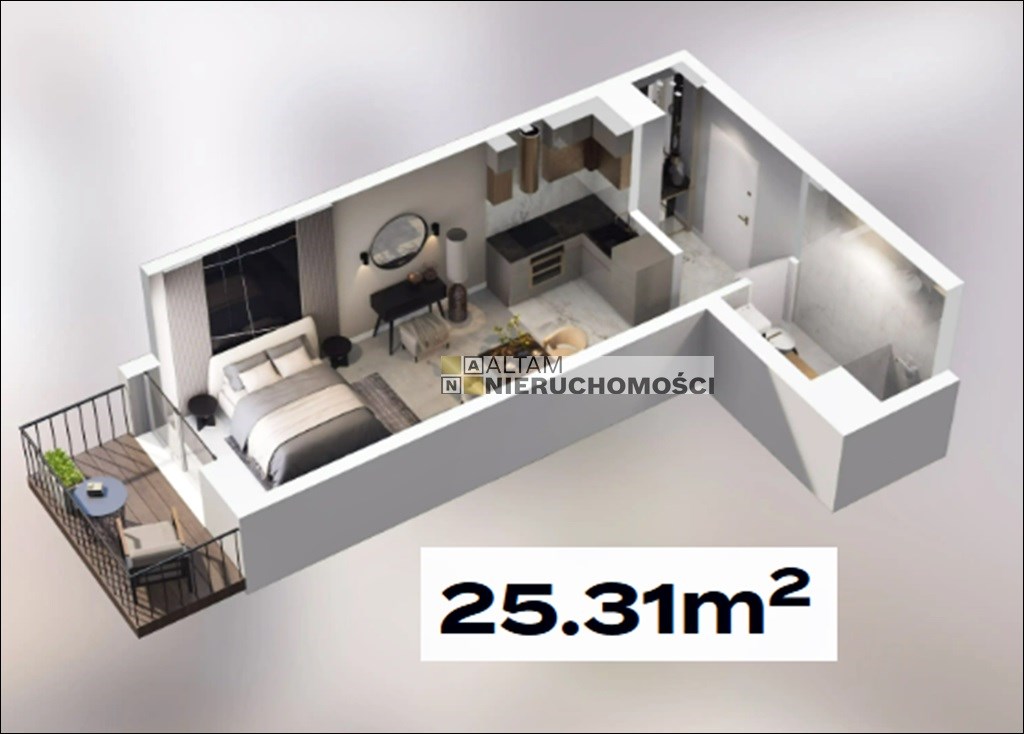 Przedmiotem sprzedaży jest 1-pokojowe mieszkanie z aneksem kuchennym o powierzchni 25,31 m² zlokalizowane na I piętrze (1/4) z szerokim balkonem. Cena zawiera VAT. Mieszkania oddawane są w standardzie deweloperskim+.