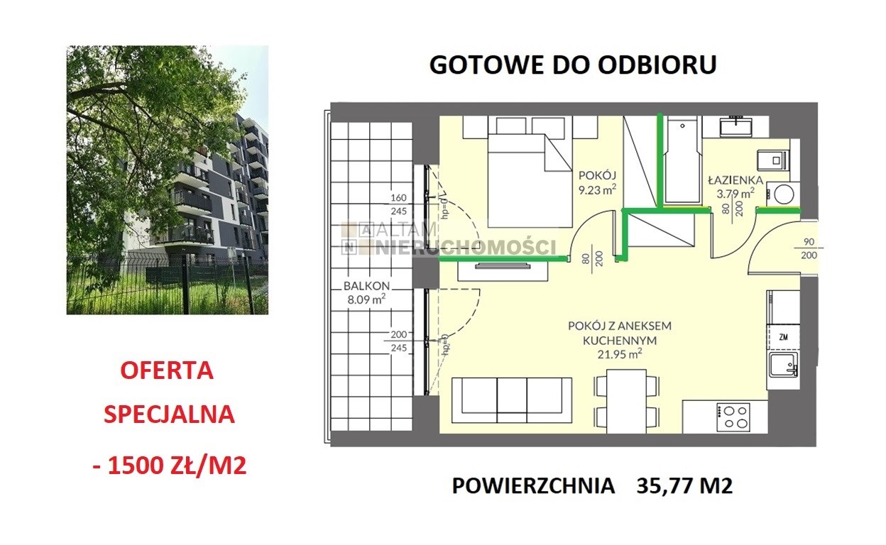 Przedmiotem sprzedaży jest 2-pokojowe mieszkanie z aneksem kuchennym o powierzchni projektowej 35,77  z balkonem zlokalizowane na II-piętrze (budynek 8-piętrowy, dostępne również inne kondygnacje). Cena zawiera VAT. Mieszkania oddawane są w standardzie deweloperskim+.