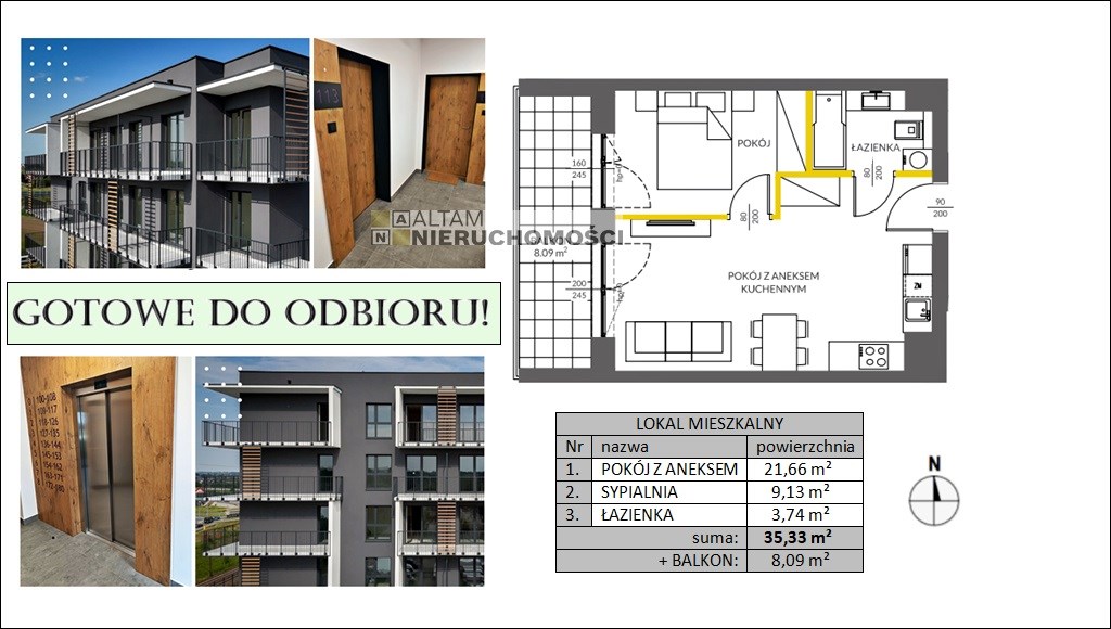 o powierzchni 35,33 m² zlokalizowane na I piętrze (1/8) z szerokim balkonem.
