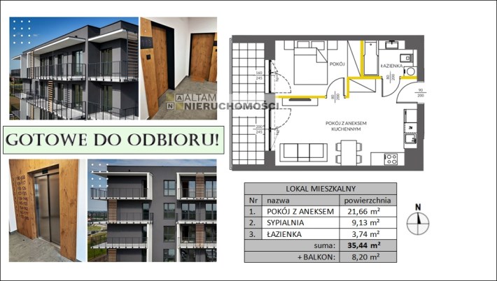 o powierzchni 35,44 m² zlokalizowane na I piętrze (1/8) z szerokim balkonem.