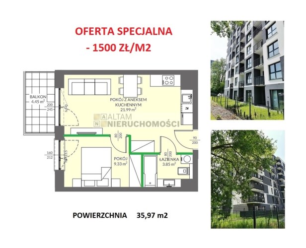 2 pokoje 3 piętro 35,97 m2 14 800,00 zł/m2
