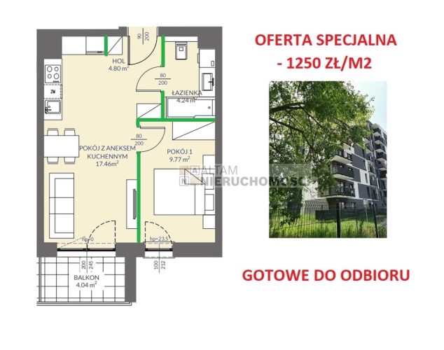 Przedmiotem sprzedaży jest 2-pokojowe mieszkanie z aneksem kuchennym o powierzchni 37,25 m² z balkonem zlokalizowane na V-piętrze (budynek 8-piętrowy, dostępne również inne kondygnacje). Cena zawiera VAT. Mieszkania oddawane są w standardzie deweloperskim+.