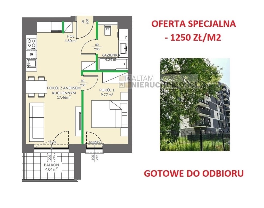 Przedmiotem sprzedaży jest 2-pokojowe mieszkanie z aneksem kuchennym o powierzchni 36,25 m² z balkonem zlokalizowane na V-piętrze (budynek 8-piętrowy, dostępne również inne kondygnacje) z komórką lokatorską. Cena zawiera VAT. Mieszkania oddawane są w standardzie deweloperskim+.