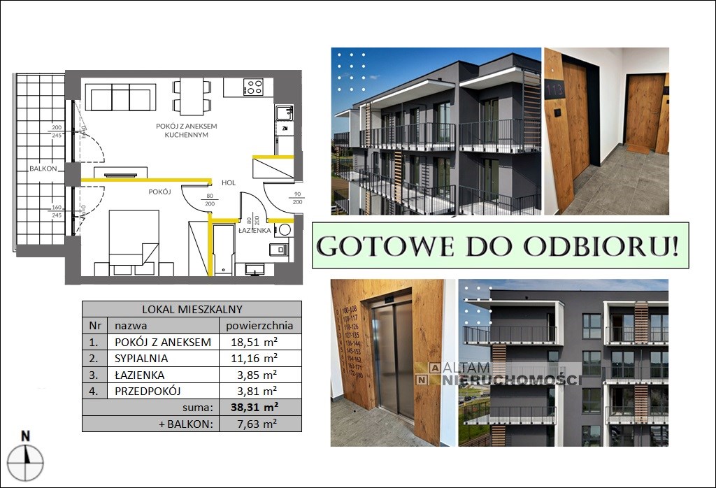 o powierzchni 38,31 m² zlokalizowane na II piętrze (2/8) z szerokim balkonem.