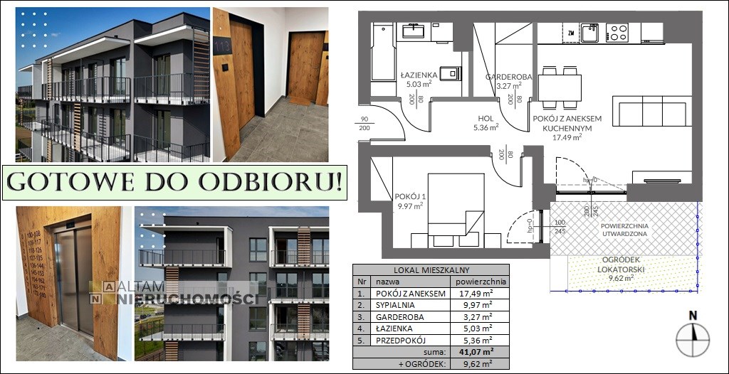 o powierzchni 41,07 m² zlokalizowane na parterze (0/8) z ogródkiem.