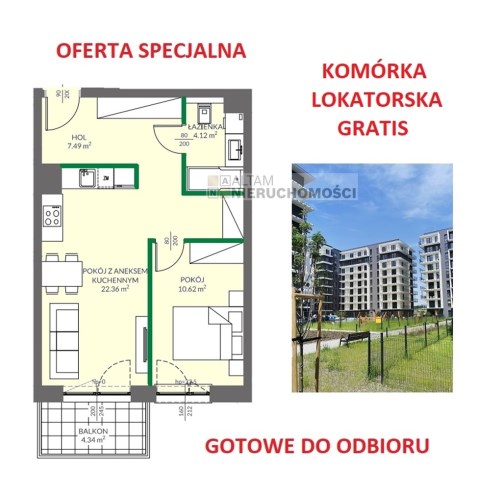 - komórka lokatorska o powierzchni 1,87 m2 GRATIS