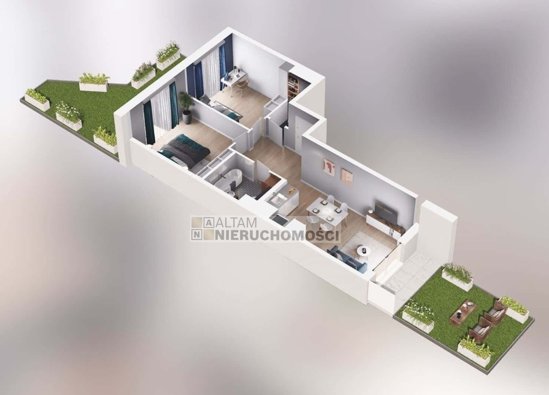 - 2 x ogródek: pow. 26,17 m2 oraz 17,49 m2