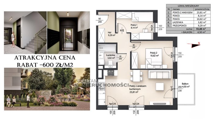 - + BALKON 1: 4,50 m²
