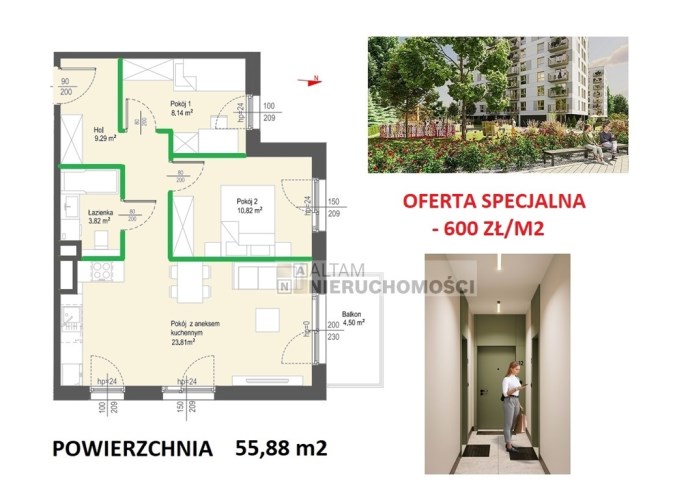 - ekspozycja okien na dwie strony świata: wschód oraz północ