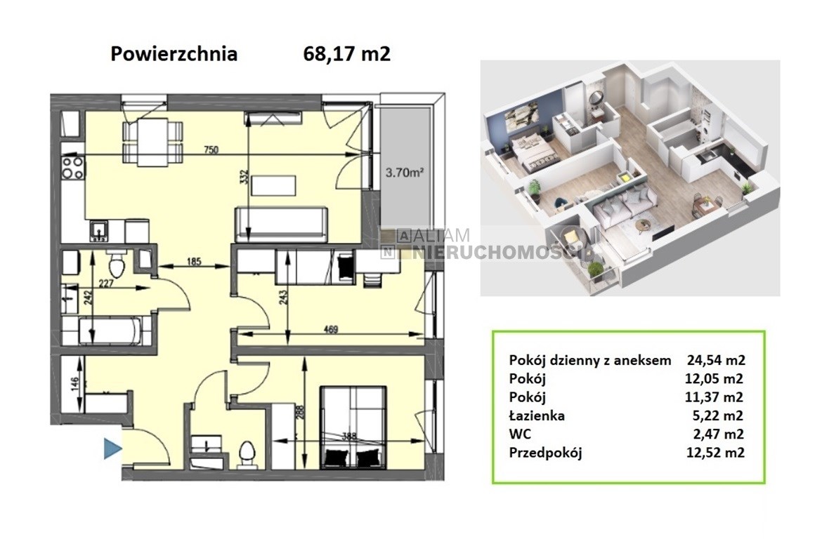 Przedmiotem sprzedaży jest gotowe do odbioru 3-pokojowe mieszkanie z aneksem kuchennym o powierzchni projektowej 68,17  z balkonem zlokalizowane na IV-piętrze (budynek 8-piętrowy). Cena zawiera VAT. Mieszkania oddawane są w standardzie deweloperskim+.