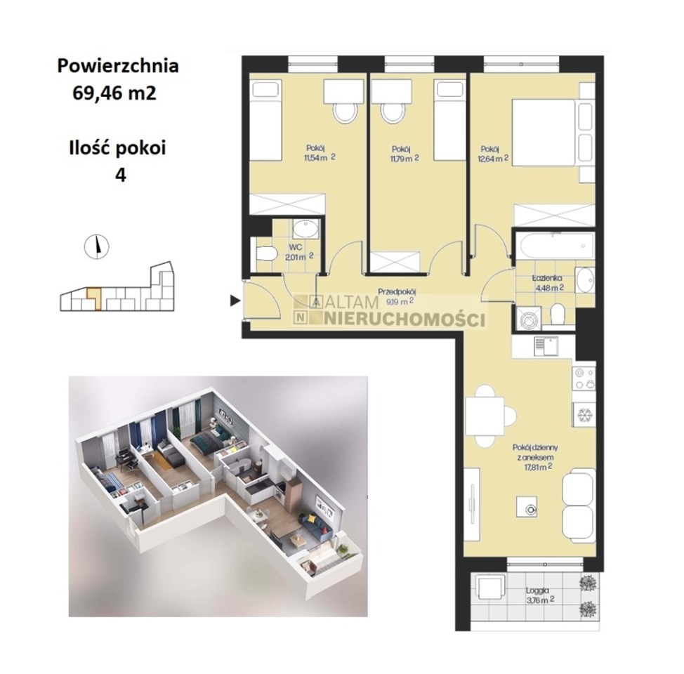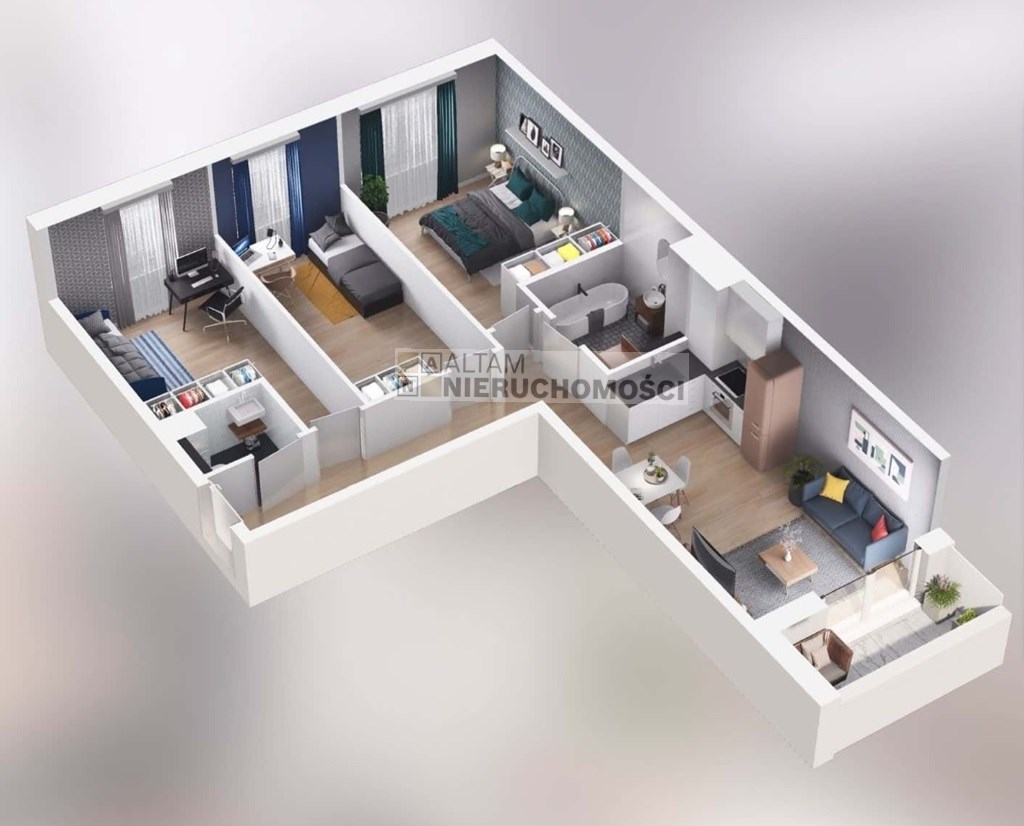 - pokój dzienny z aneksem kuchennym +3 pokoje