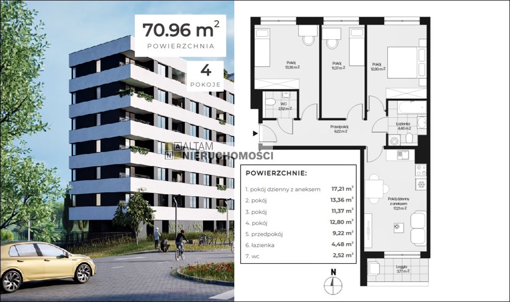 o powierzchni 70,96 m² zlokalizowane na III piętrze (3/9).