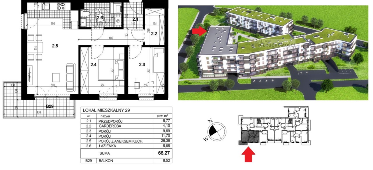 Przedmiotem sprzedaży jest trzypokojowe mieszkanie o powierzchni 66,27m² z balkonem zlokalizowane na pierwszym piętrze (budynek 4-piętrowy z windą). Cena zawiera VAT. Mieszkania oddawane są w standardzie deweloperskim +.