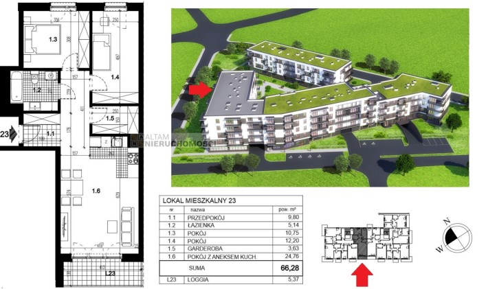 Przedmiotem sprzedaży jest trzypokojowe mieszkanie o powierzchni 66,28m² z balkonem zlokalizowane na pierwszym piętrze (budynek 4-piętrowy z windą). Cena zawiera VAT. Mieszkania oddawane są w standardzie deweloperskim +.