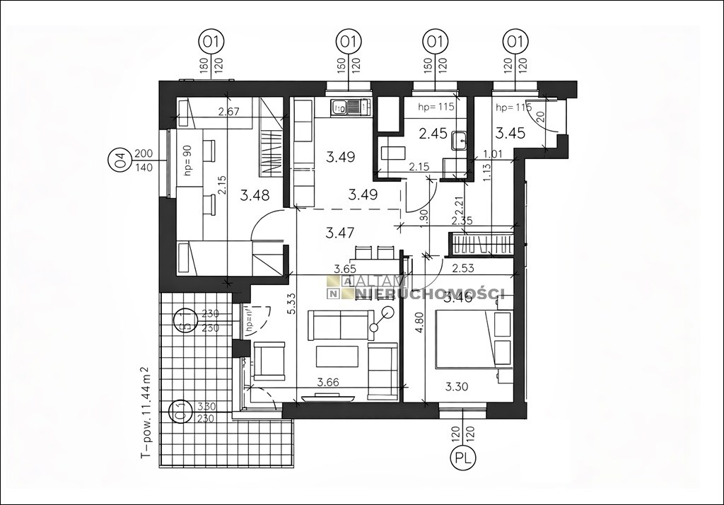 - dwóch sypialni: 13,34 m² oraz 10,83 m²