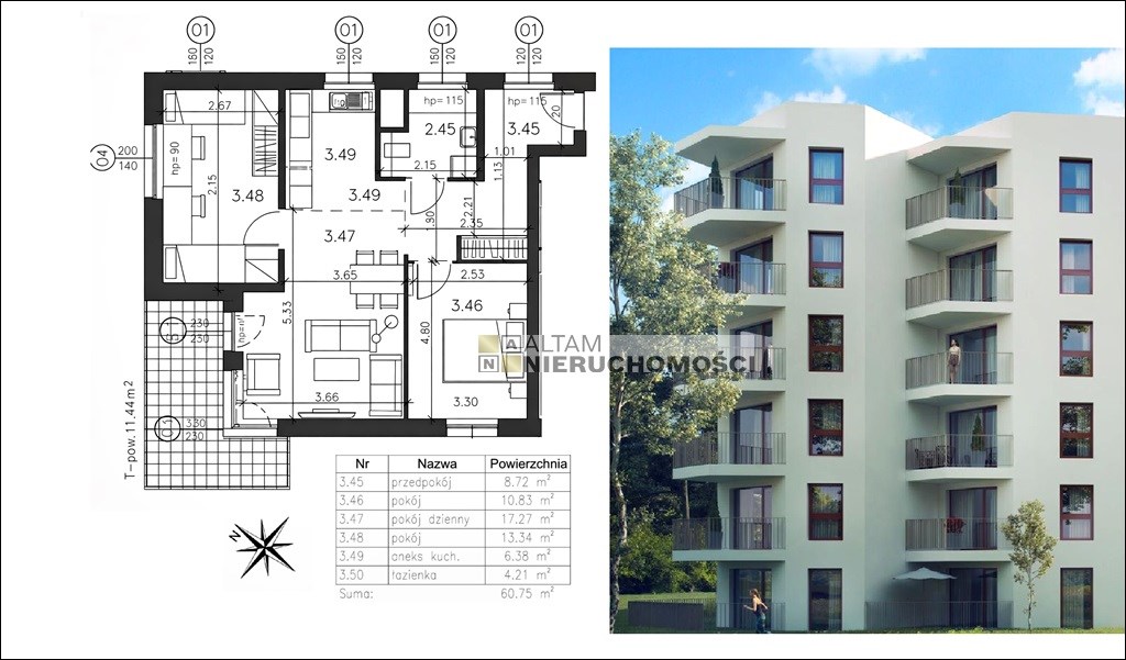 Przedmiotem sprzedaży jest 3-pokojowe mieszkanie z osobną jasną kuchnią o powierzchni 60,75 m² zlokalizowane na III piętrze (3/5) z szerokim balkonem.