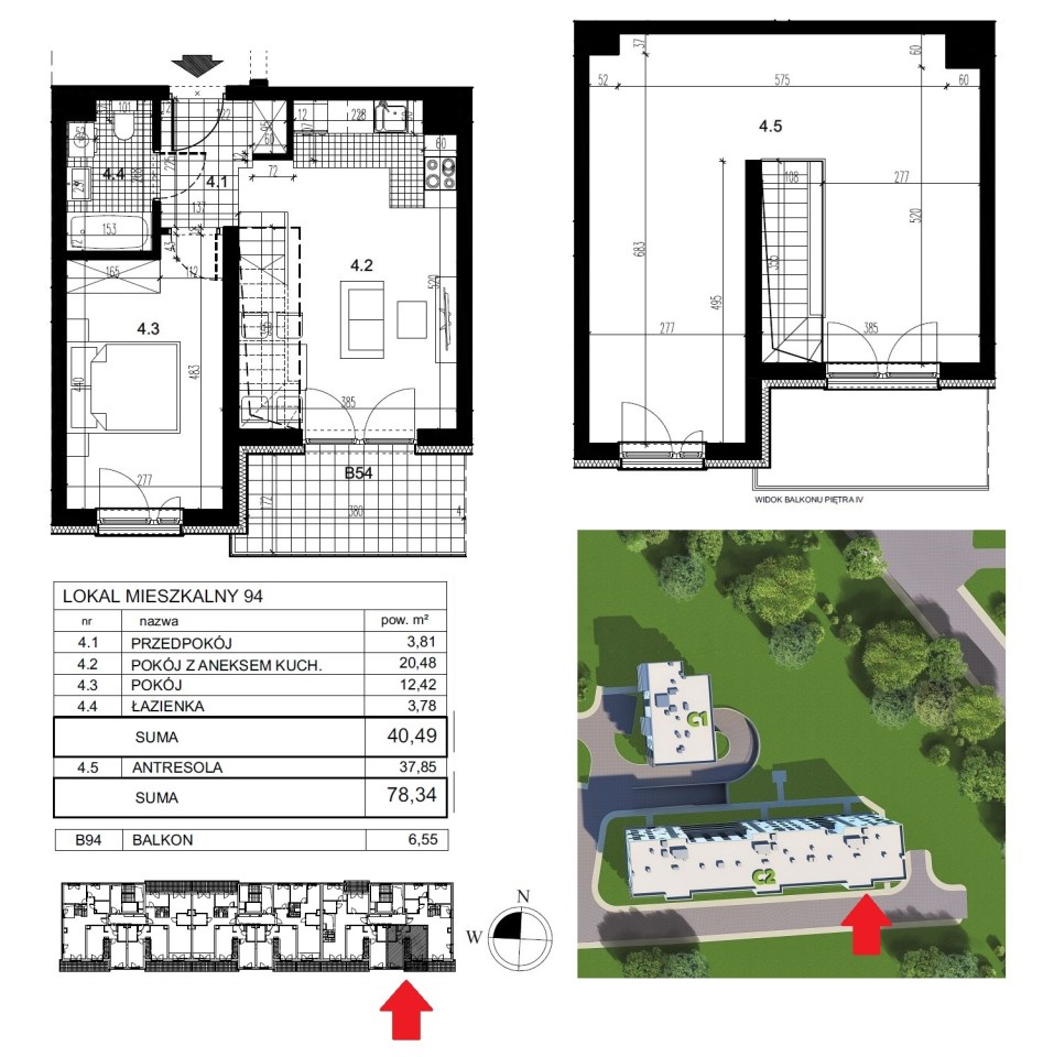 Przedmiotem sprzedaży jest mieszkanie o powierzchni 78,34 m² (dwa poziomy) z balkonem zlokalizowane na IV i V piętrze (budynek 5-piętrowy z windą). Cena zawiera VAT. Mieszkania oddawane są w standardzie deweloperskim +.