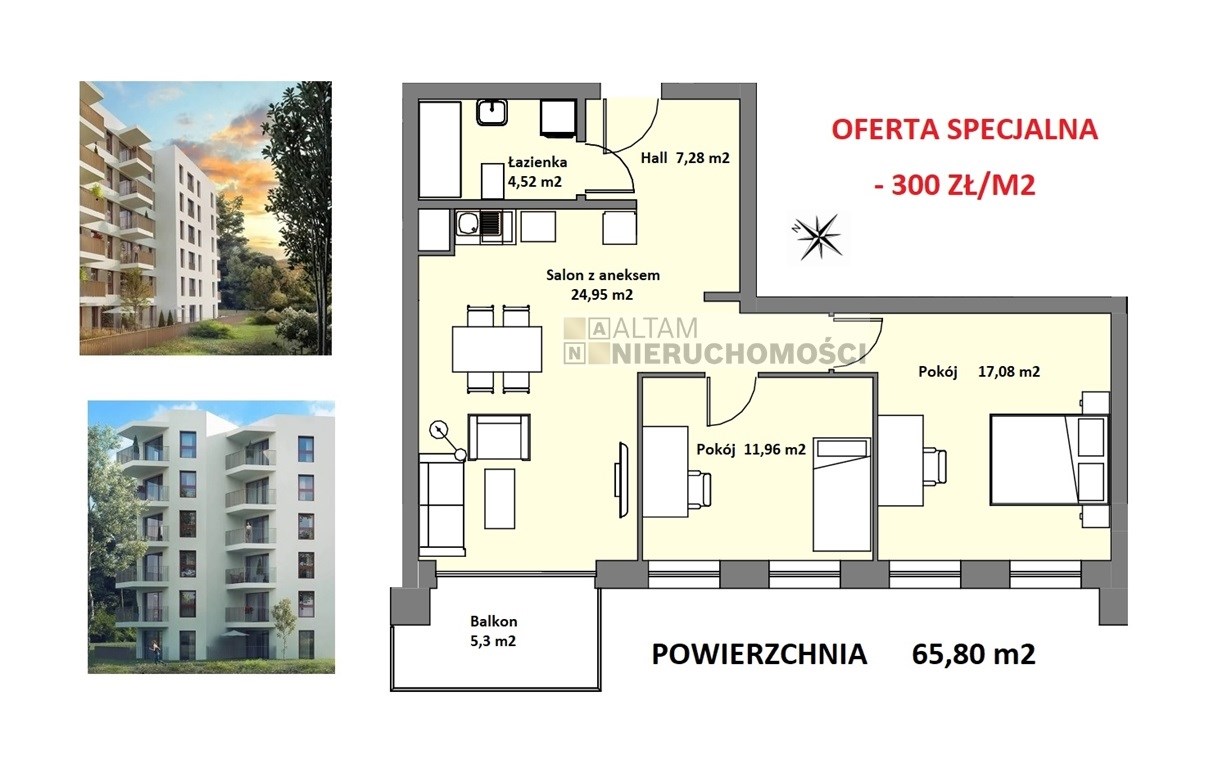 - możliwość aranżacji jako mieszkanie 4-pokojowe z aneksem kuchennym
