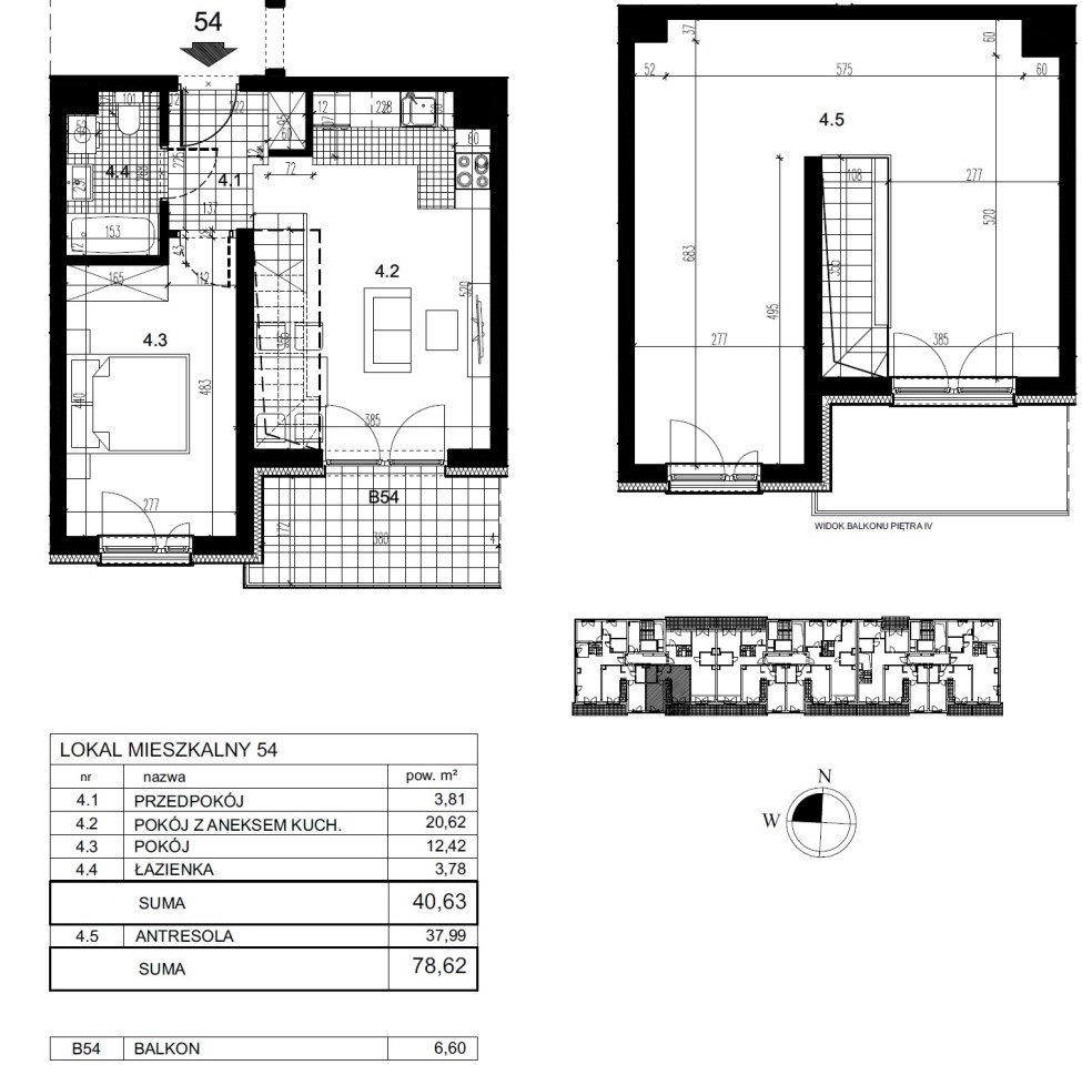 Przedmiotem sprzedaży jest dwupoziomowe mieszkanie o powierzchni 78,62 m² z balkonem zlokalizowane na IV i V piętrze (budynek 5-piętrowy z windą). Cena zawiera VAT. Mieszkania oddawane są w standardzie deweloperskim +.
