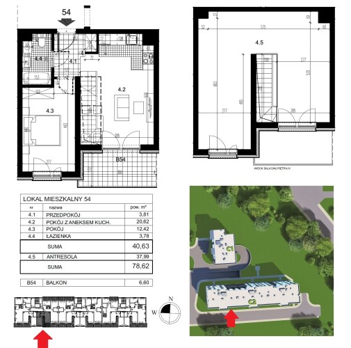 Przedmiotem sprzedaży jest dwupoziomowe mieszkanie o powierzchni 78,62 m² z balkonem zlokalizowane na IV i V piętrze (budynek 5-piętrowy z windą). Cena zawiera VAT. Mieszkania oddawane są w standardzie deweloperskim +.