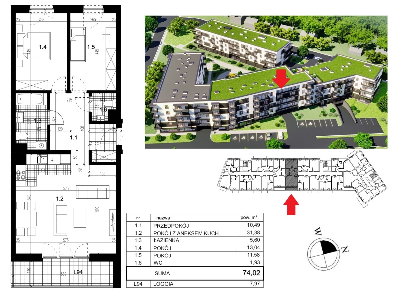 Przedmiotem sprzedaży jest trzypokojowe mieszkanie o powierzchni 74,02m² z balkonem zlokalizowane na pierwszym piętrze (budynek 3-piętrowy z windą). Cena zawiera VAT. Mieszkania oddawane są w standardzie deweloperskim +.